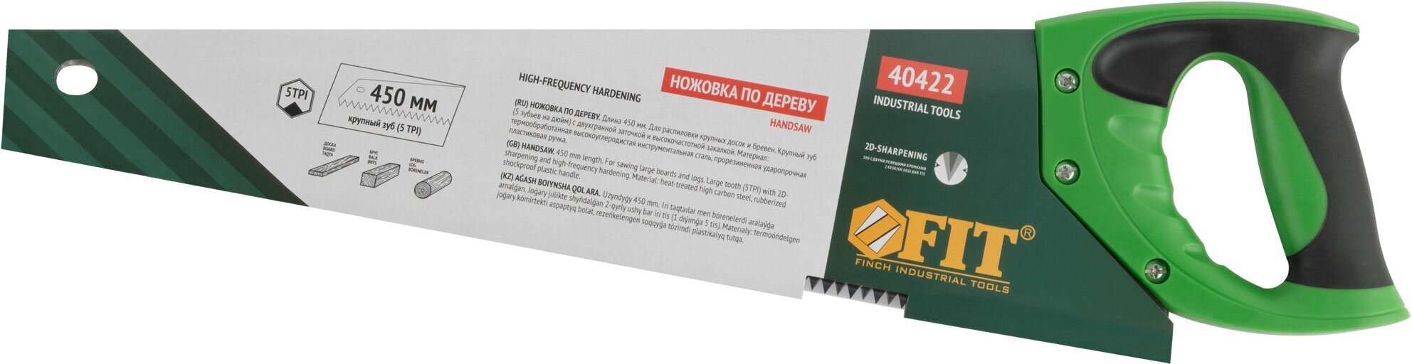 Ножовка по дереву FIT 40422 , крупный каленый зуб 5 TPI, 2D заточка, пластиковая ручка 450 мм