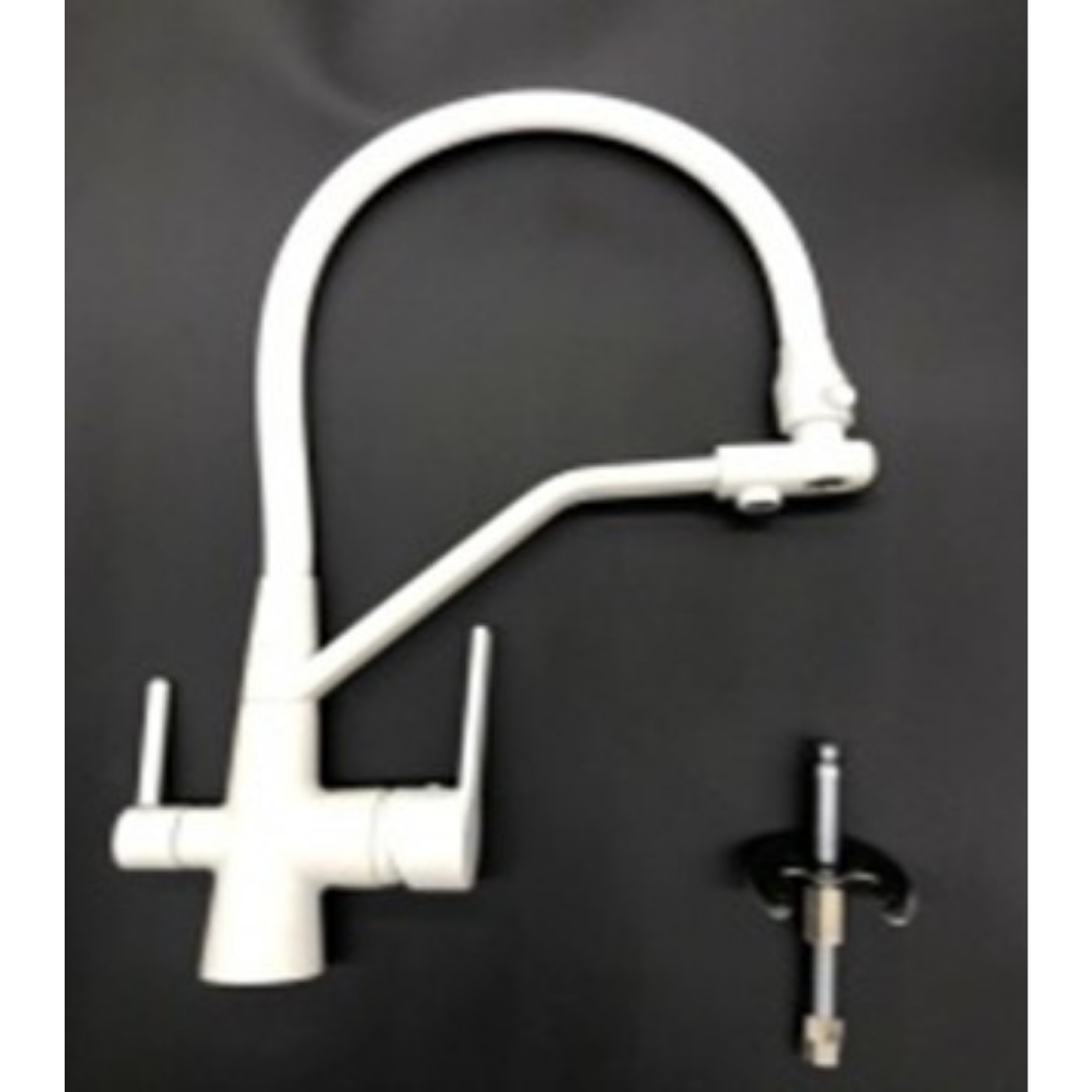Смеситель для кухни OUTE белый, однорычажный, с дополнительным выводом под фильтр питьевой воды, с гибким изливом.