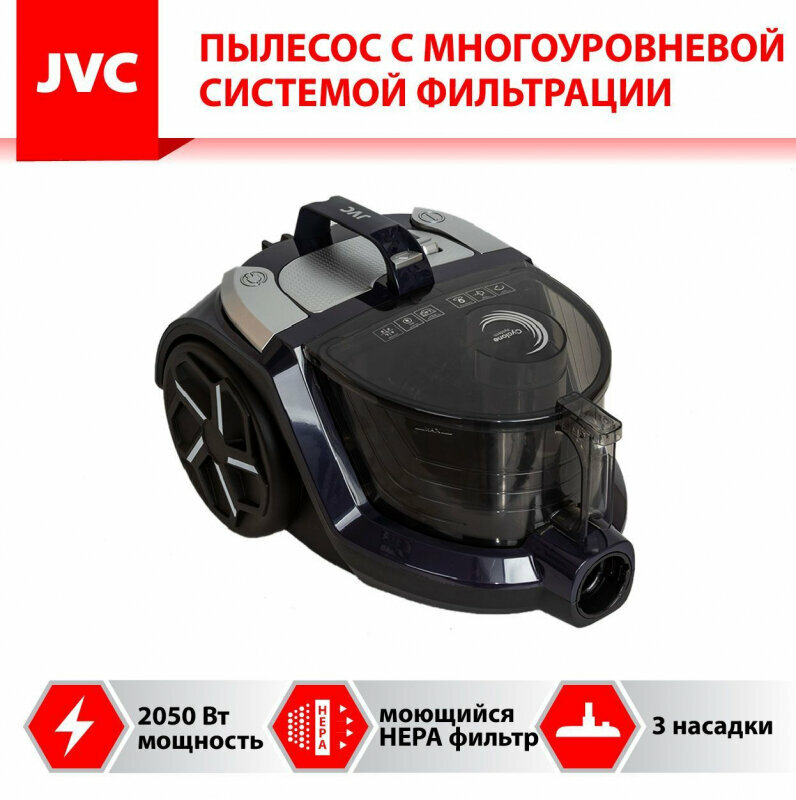 Пылесос для дома бытовой JVC без мешка, циклон, нера фильтр, 3 насадки, шнур 6 метров, 2050 Вт интересное: