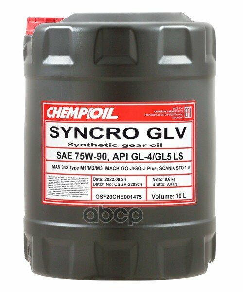CHEMPIOIL CH880110E 75W-90 Syncro GLV GL-4/GL-5 LS 10л (синт. транс. масло)