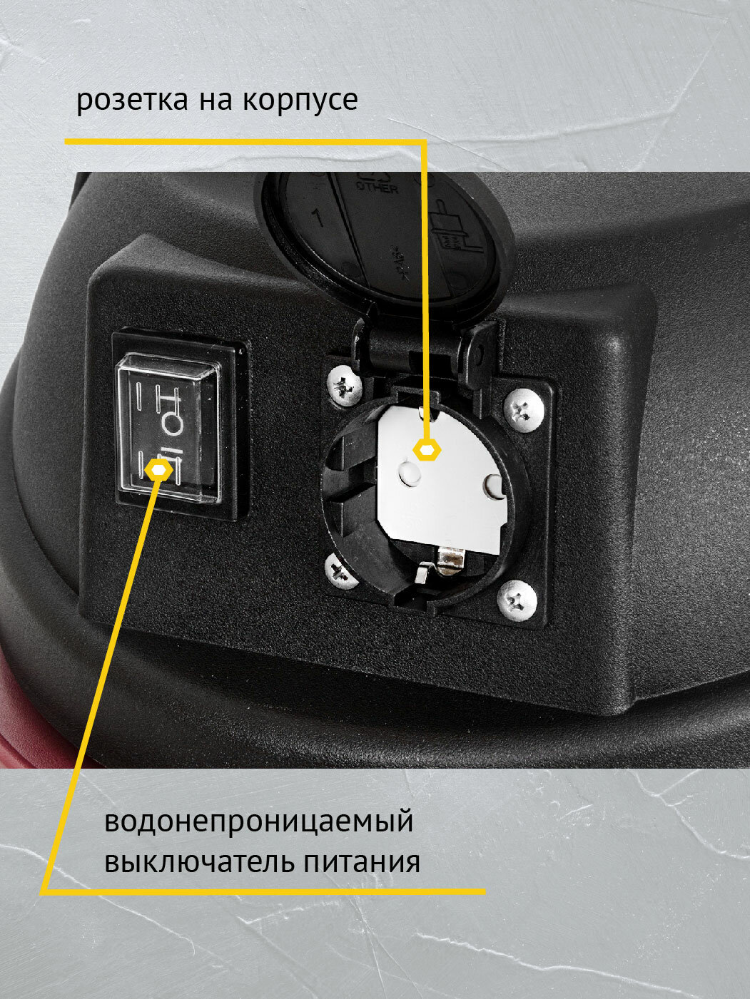 Пылесос строительный Pioneer 30 л с нера-фильтром, функция выдувания, синхронизация работы с инструментом, сбор жидкости, 1400 Вт