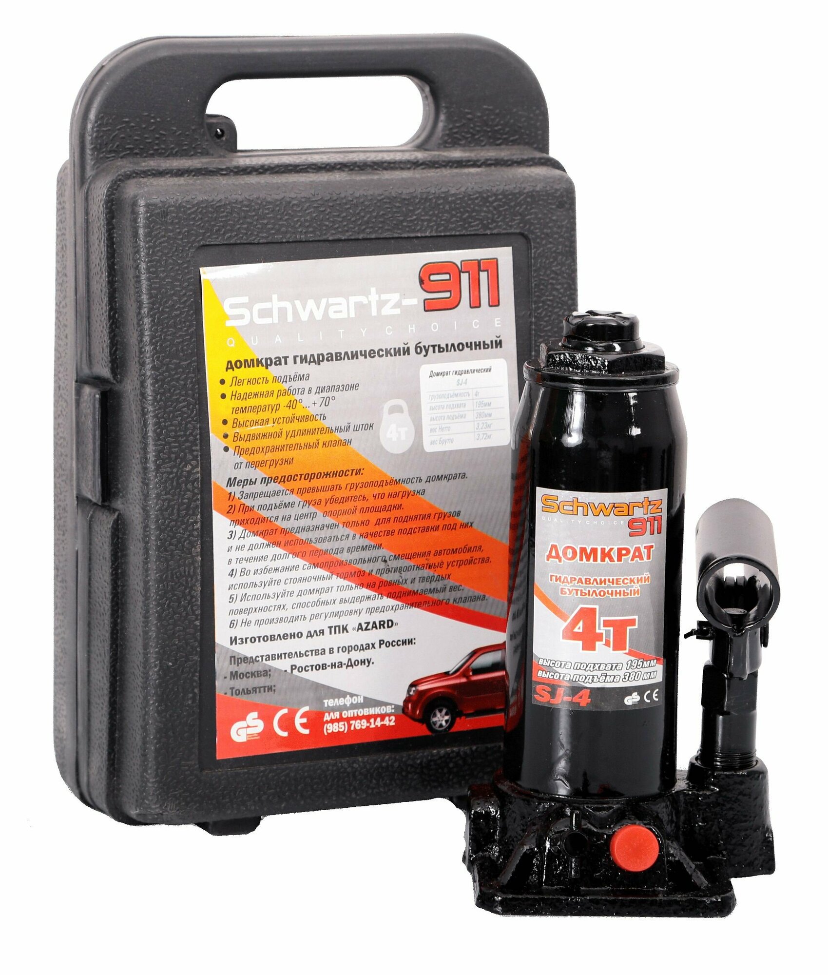 Домкрат гидравлический 4 т 195-380 мм кейс Schwartz-911 SCHWARTZ-911 DOMK0008 | цена за 1 шт интересное: