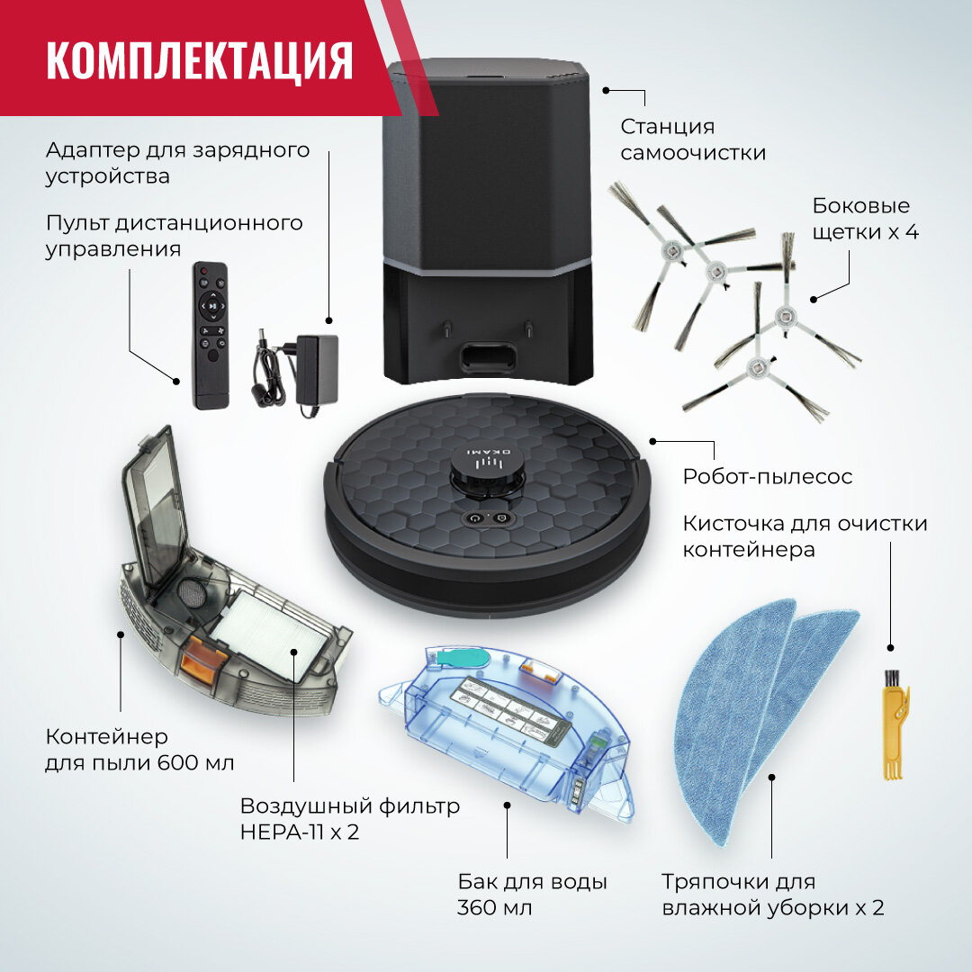 | Особенности конструкции | гироскоп / датчик перепада высоты / лидар / мусоросборник в базе / мягкий бампер |