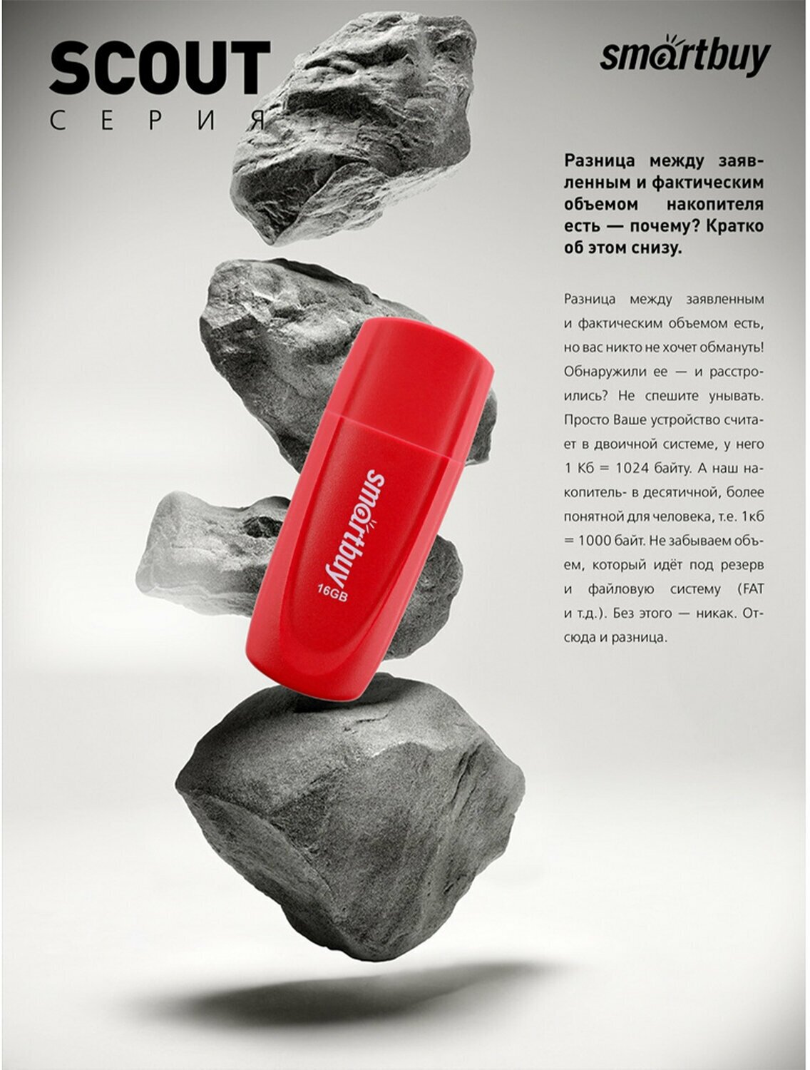 USB Флеш-накопитель - Smart Buy Scout, 16 Гб, пластик, красный, 1 шт.