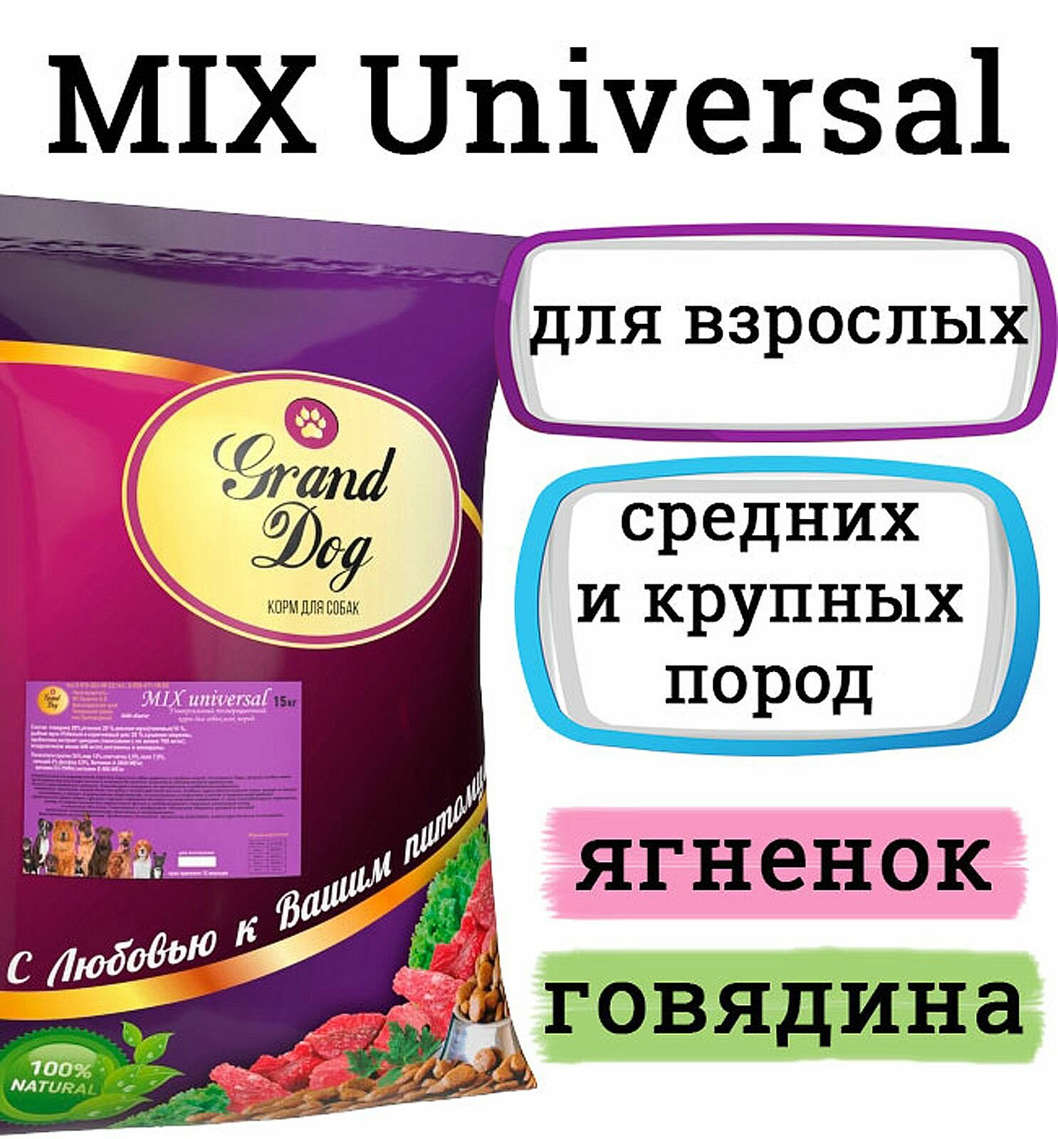 Сухой корм для собак Grand Dog MIX Universal универсальный корм для взрослых собак всех пород, 15кг