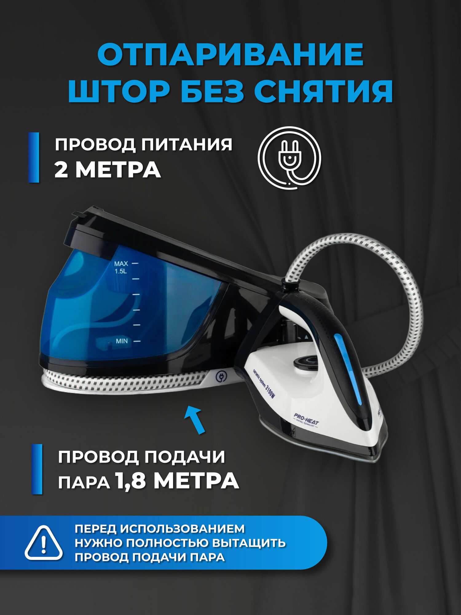 | Объeм резервуара для воды | 1500 мл |
