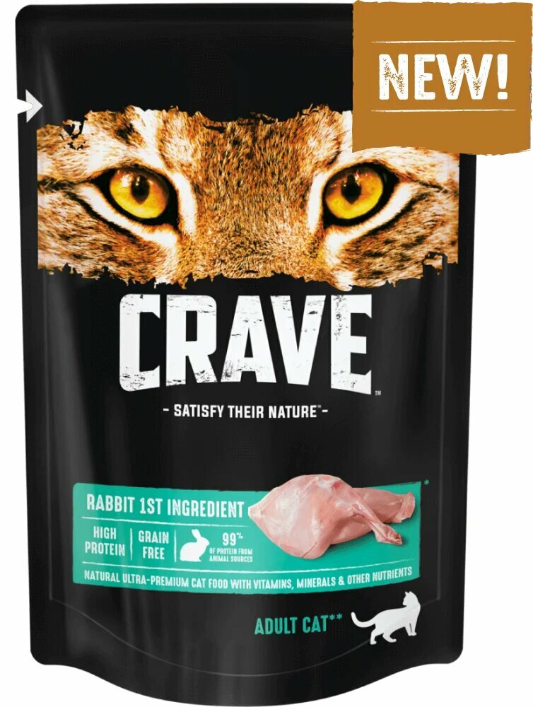 CRAVE Корм консервированный для взрослых кошек Кролик (пауч) 30х70гр интересное: