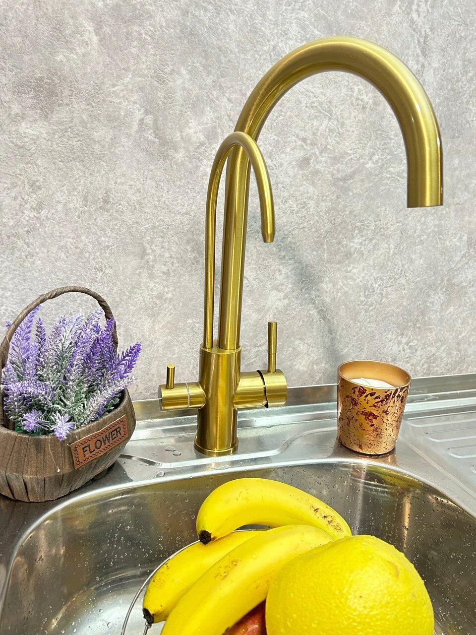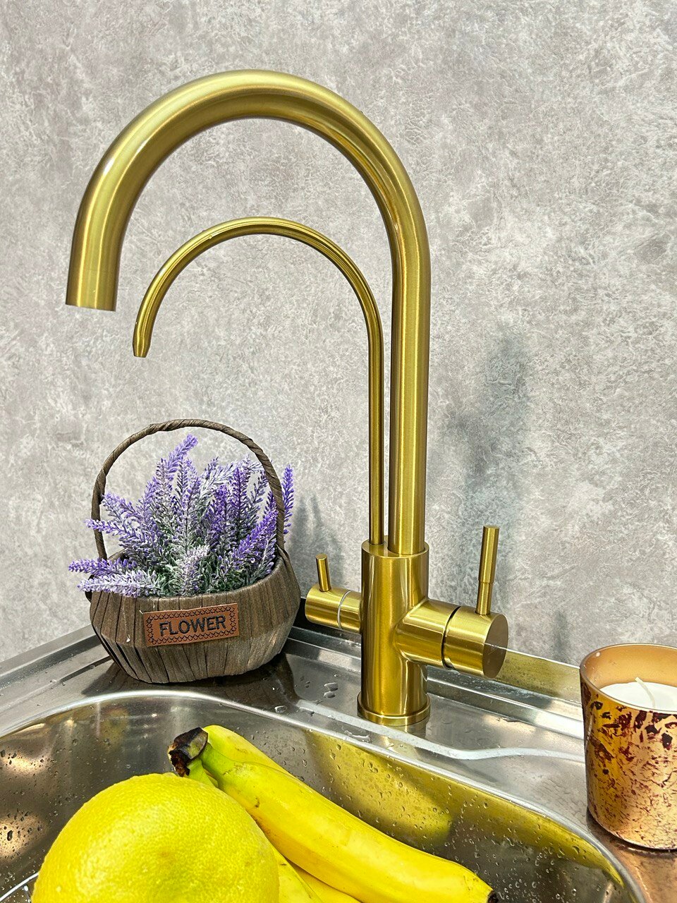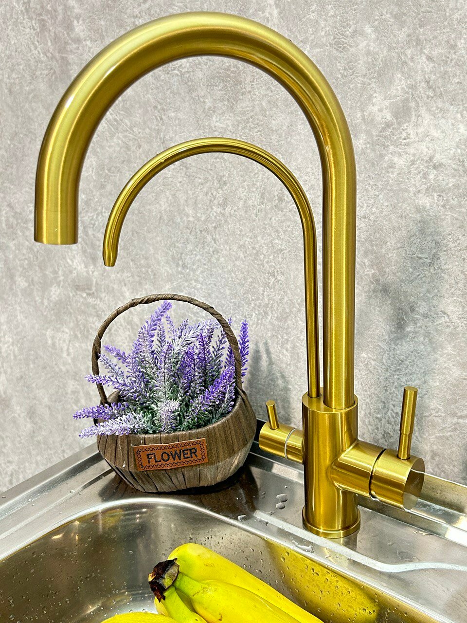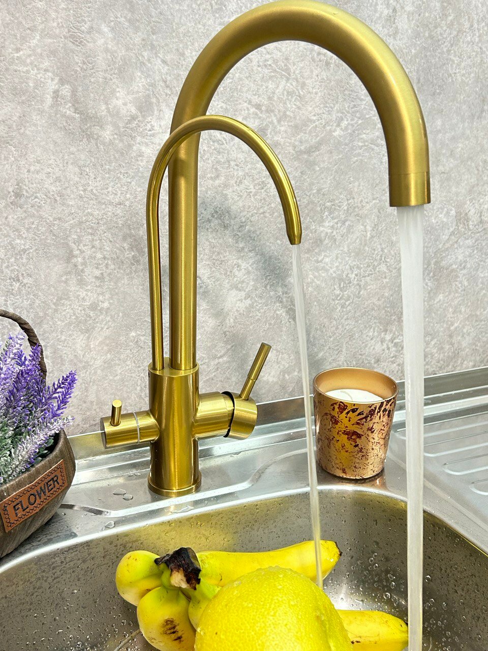 Смеситель для кухни из нержавеющей стали с поворотным изливом под фильтр Hansen HN15090-D Бронза