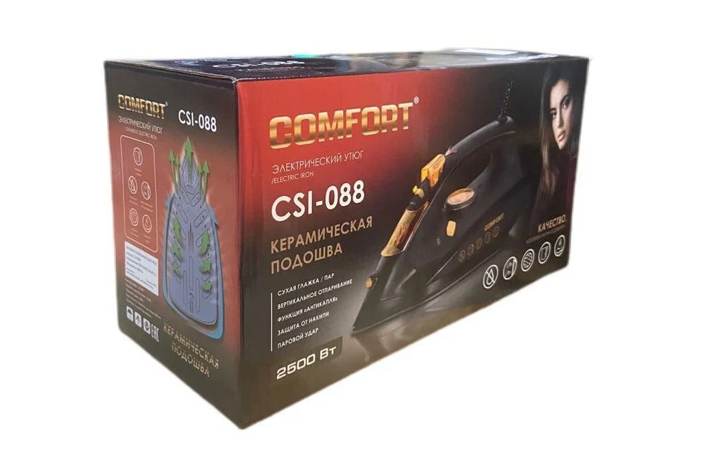 Утюг с отпаривателем Comfort CSI-088, 2500Вт, керамическая подошва, высокая мощность, 260 мл интересное: