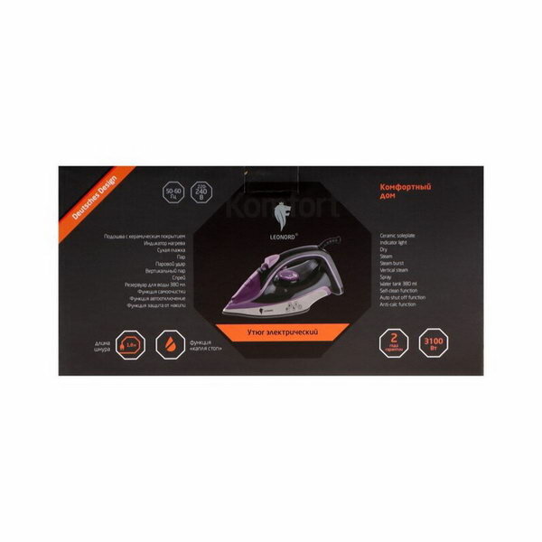 Утюг LE-1804, 3100 Вт, керамическая подошва, 320 мл, фиолетовый интересное: