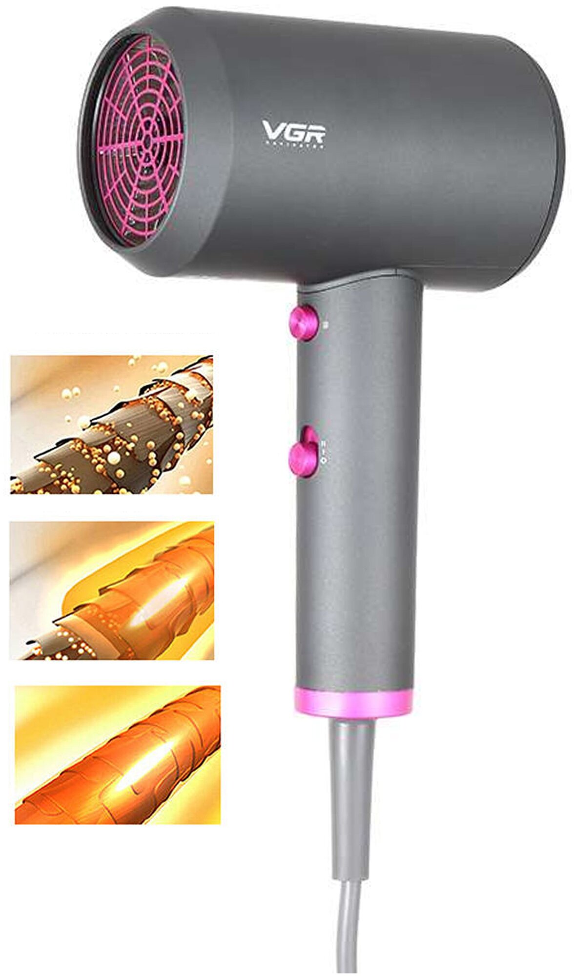 | Дополнительная информация | Профессиональный фен оснащен подачей холодного и горячего воздуха |