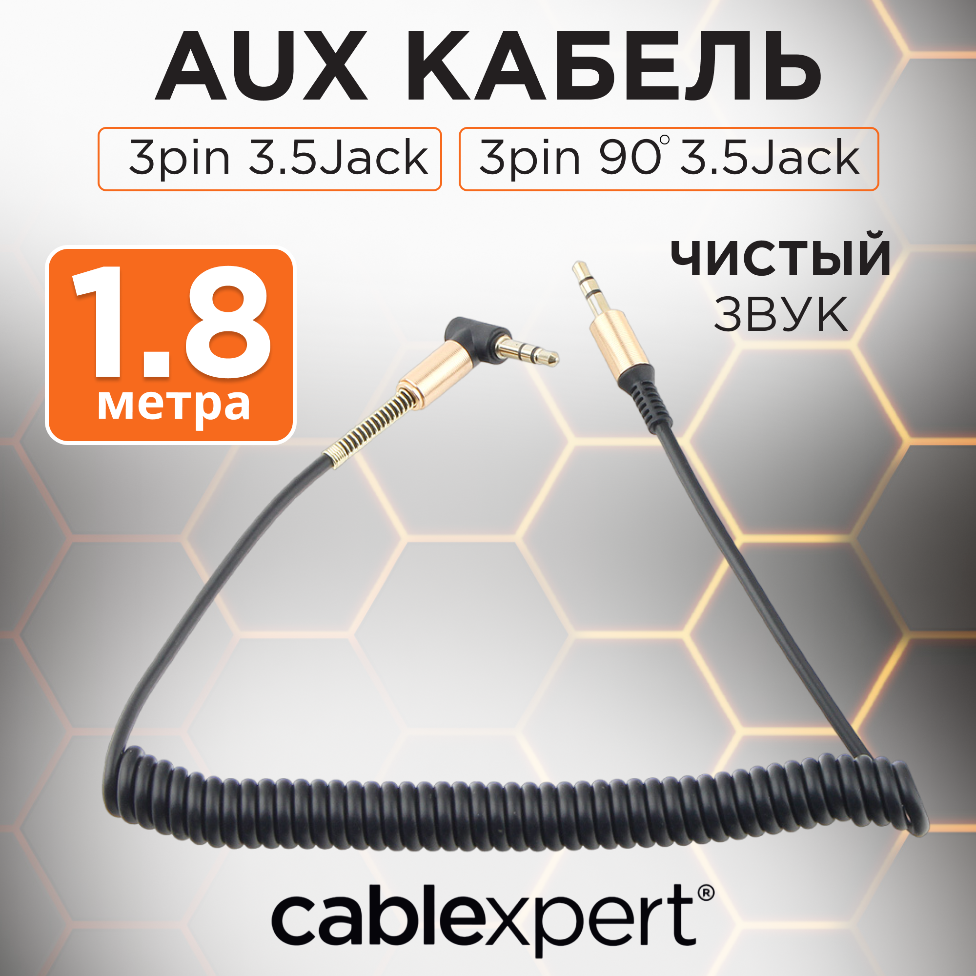 Купить Кабель аудио 90˚ спиральный Cablexpert CCAB-02-35MMLC-1.8MB. 3.5 джек , M/3.5 джек , M, черный, 1,8 м