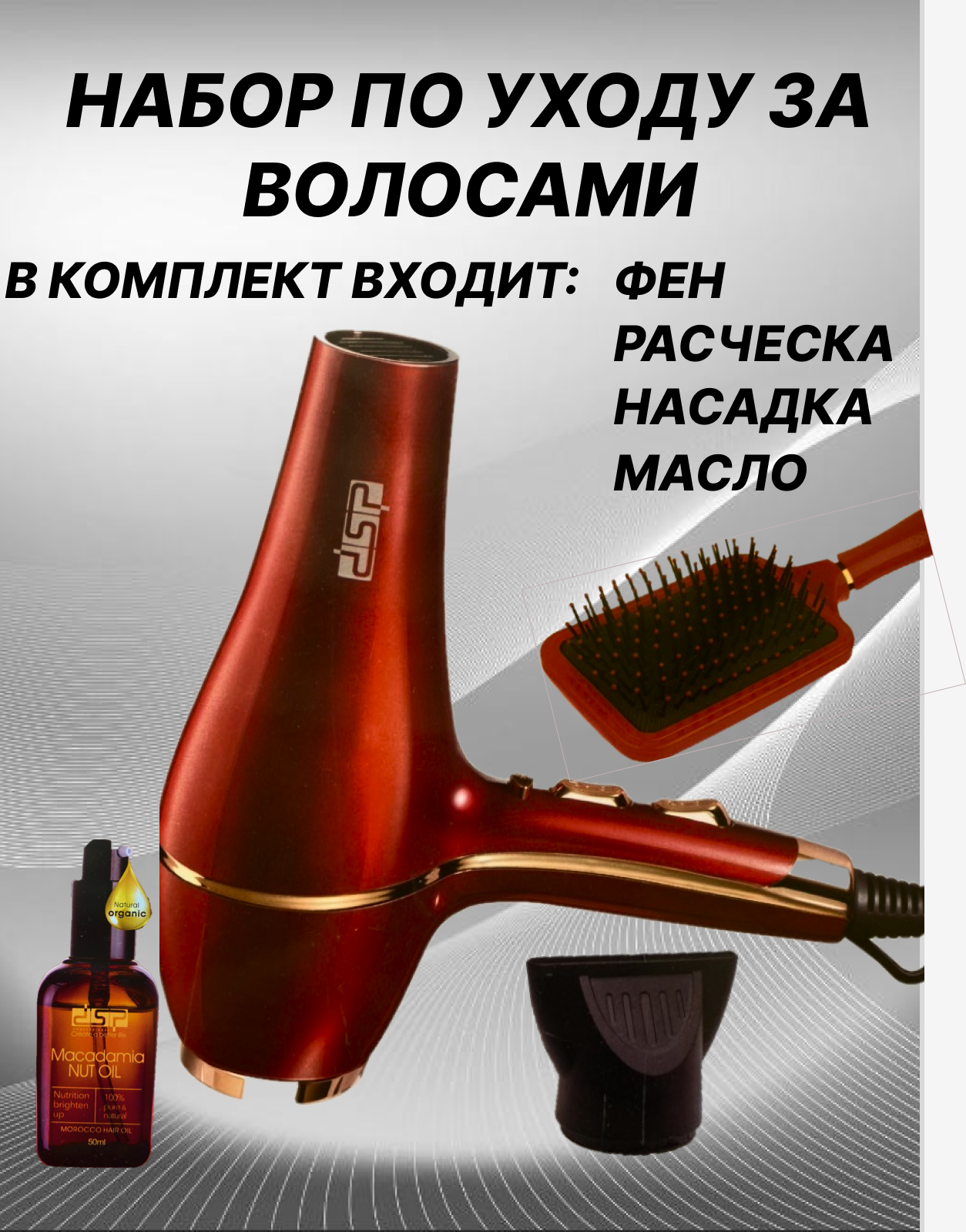 | Дополнительная информация | В комплекте расческа,масло,насадка концентратор |