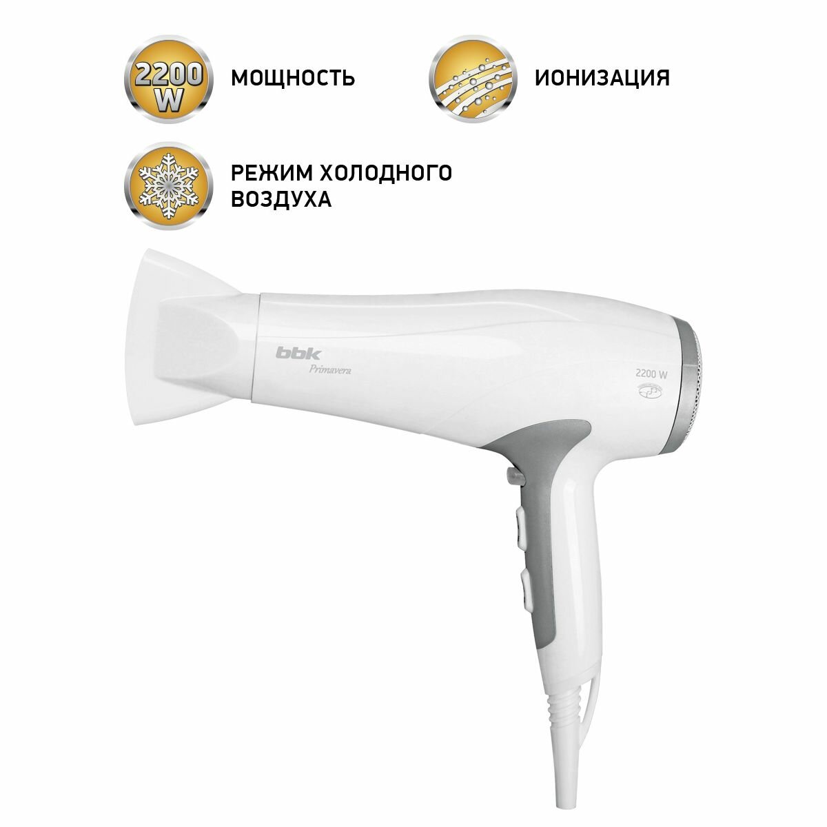 Фен BBK BHD3224I 2200 Вт, 2 скорости, белый/серый интересное: