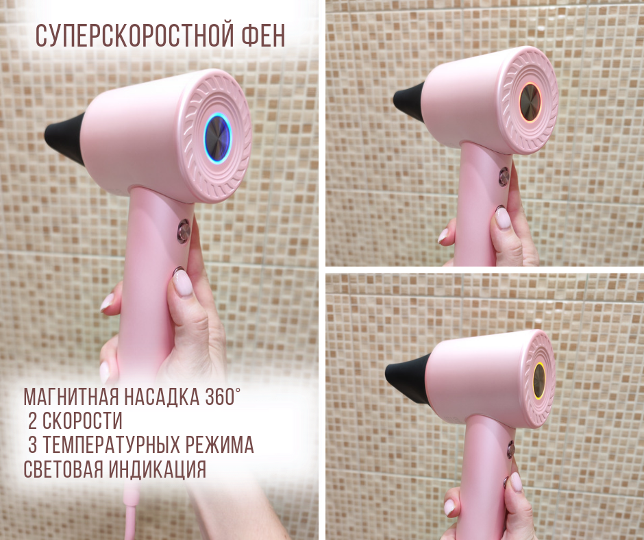 Фен SUPER SPEED HAIR DRYER, высокоскоростной фен DEALJA, 1600 Вт розовый интересное: