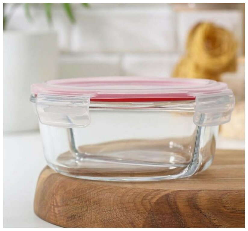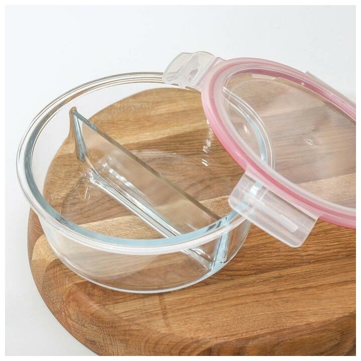 Контейнер из жаропрочного стекла Доляна «Клик», двухсекционный, каждая секция 400 мл, круглый, с крышкой