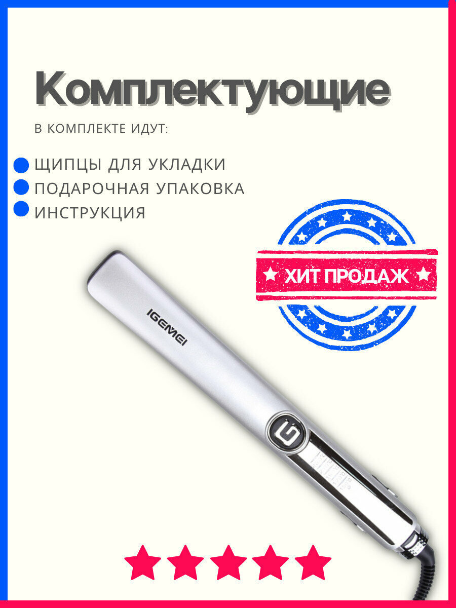 Профессиональный выпрямитель для волос GM-416 (серебристый) интересное: