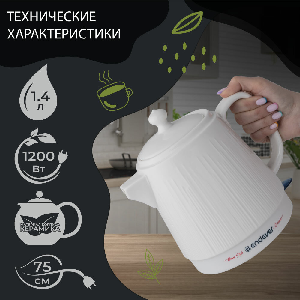 Керамический электрический чайник ENDEVER KR-450C интересное: