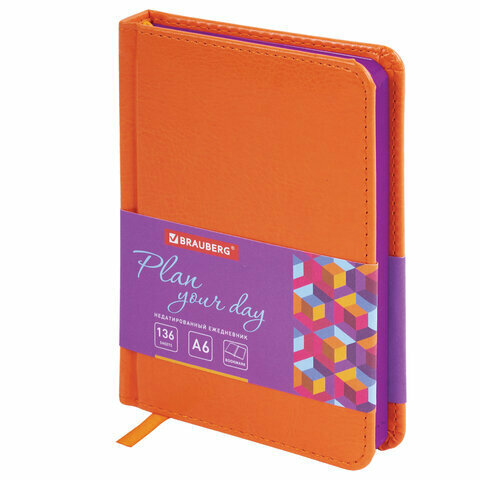 СохранитьЕжедневник недатированный малый формат 100×150 мм А6 BRAUBERG «Rainbow» под кожу, 136 л., оранжевый, 111688 интересное: