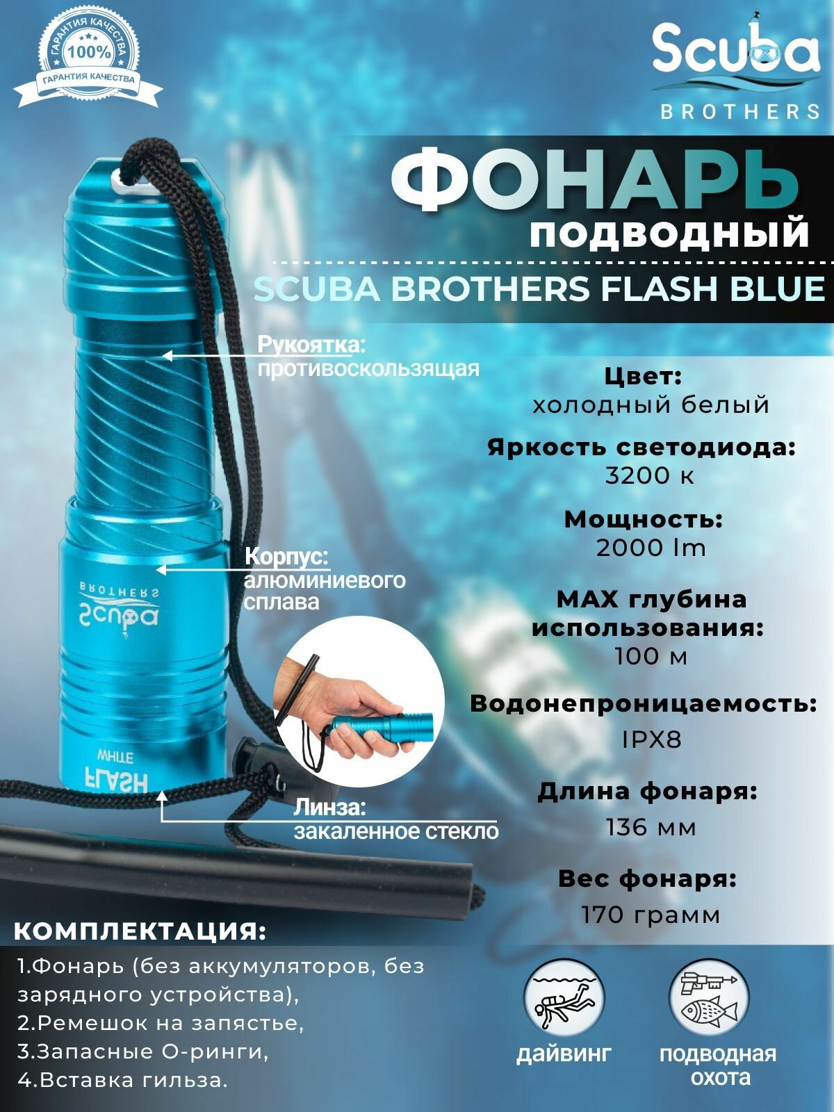 Фонарь SCUBA BROTHERS FLASH BLUE 2000Lm CREE XM-L L2, холодный белый свет интересное: