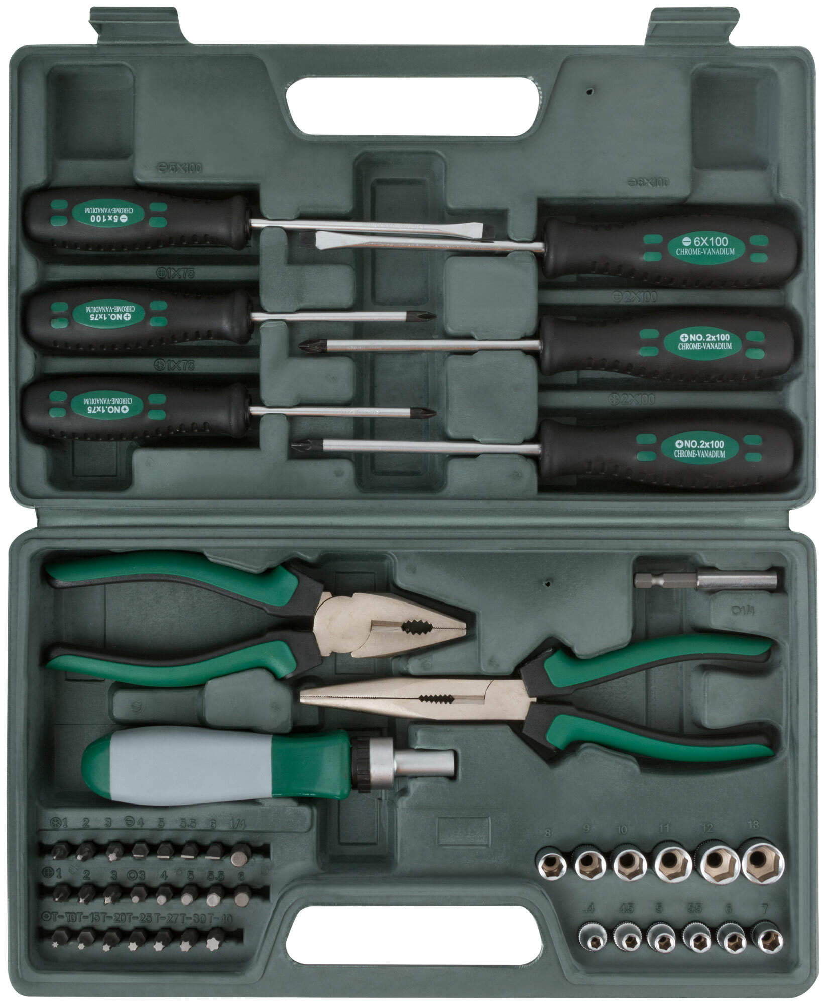 Купить Набор инструмента 45 шт. (пассатижи, отвертки, биты), пластиковый чемодан Fit
