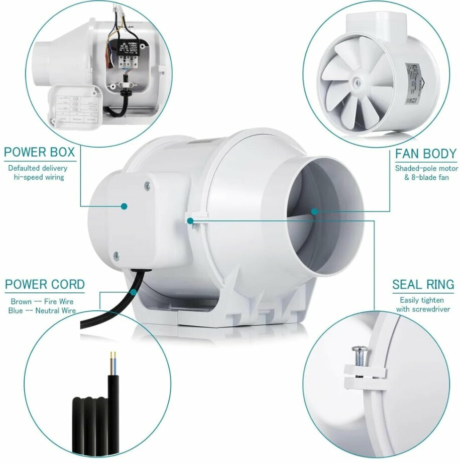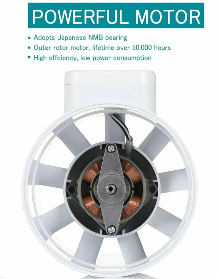 Канальный вентилятор Hon&Guan HF-100S бесшумный влагоустойчивый корпус из ABS пластика интересное: