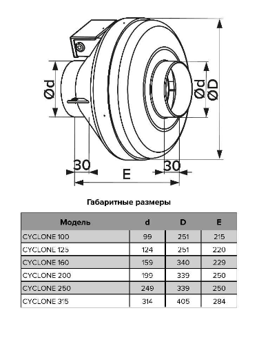 Вентилятор канальный ERA PRO CYCLONE 250, центробежный, вытяжной, приточный, D 250 мм