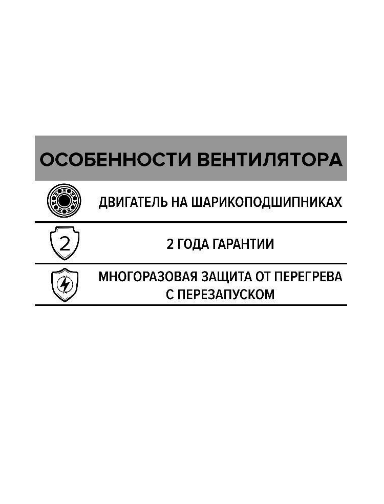 | Дополнительная информация | Двигатель на шарикоподшипниках; многоразовая защита от перегрева с перезапуском |