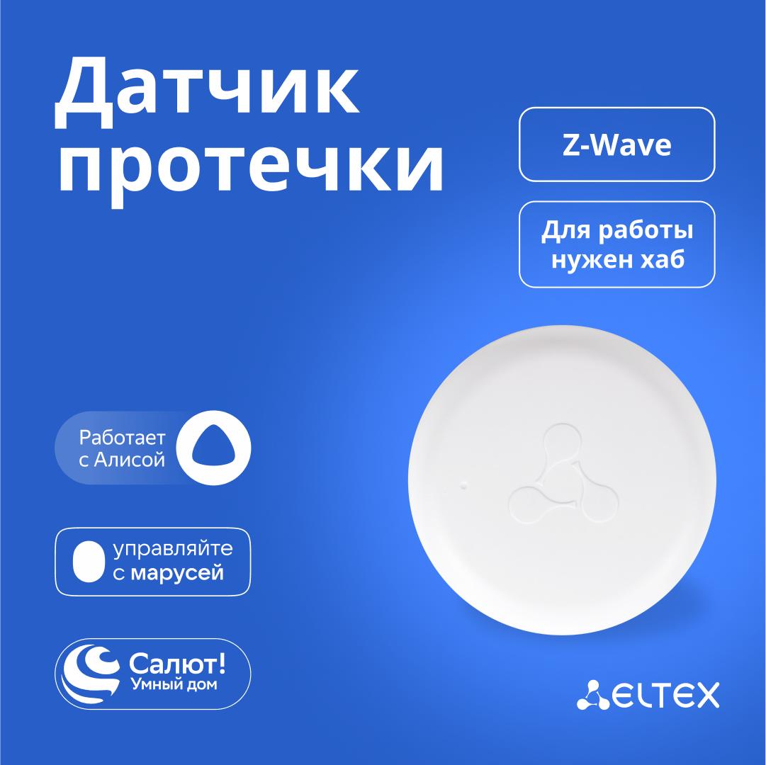 Беспроводной датчик протечки воды Eltex SZ-WLK, Z-Wave, работает с Яндекс Алисой, Салютом, Марусей (белый) интересное: