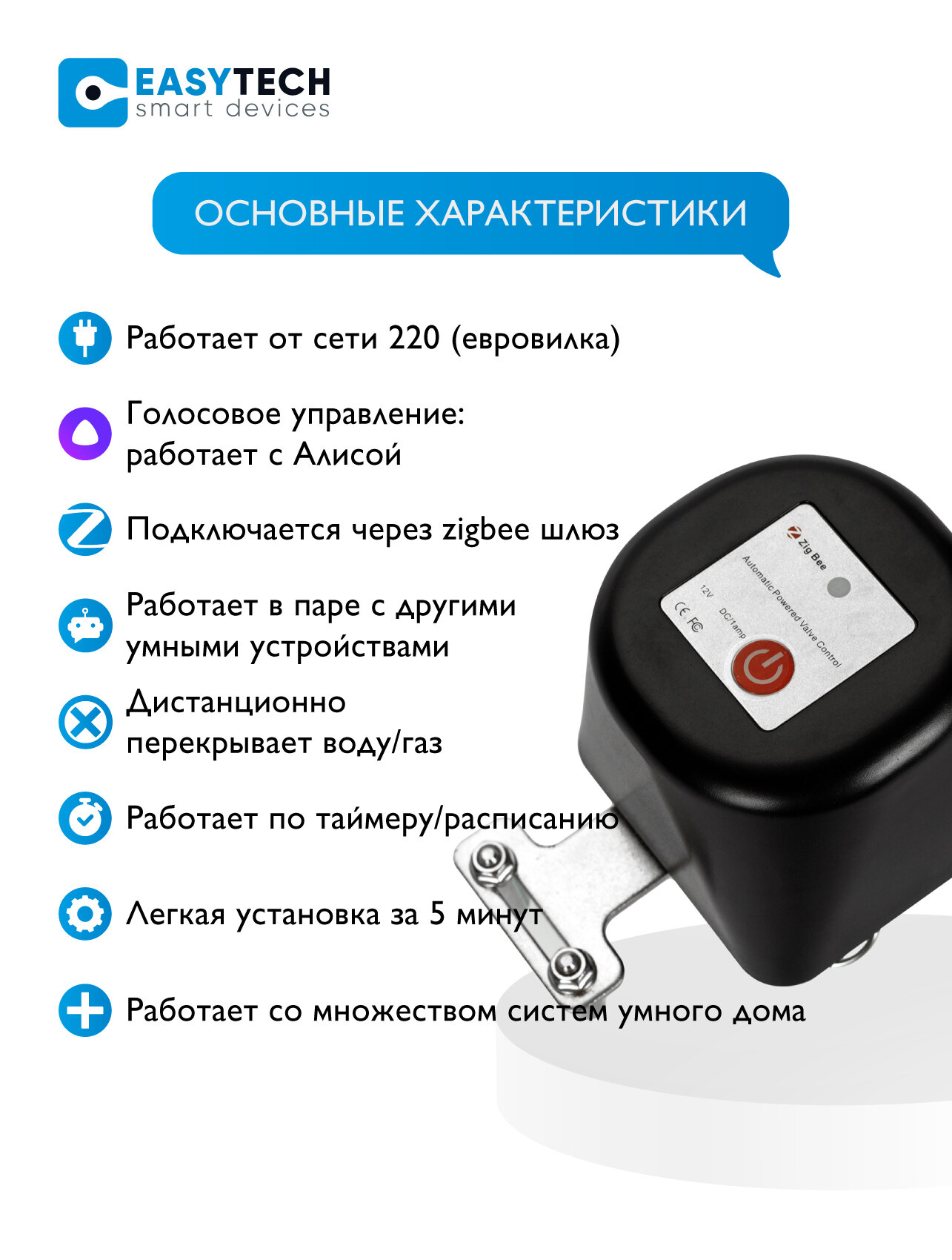 | Минусы: | В алисе нет настройки по управлению краном при сбоях по электропитанию.При перепадах он всегда переходит в закрыто. |