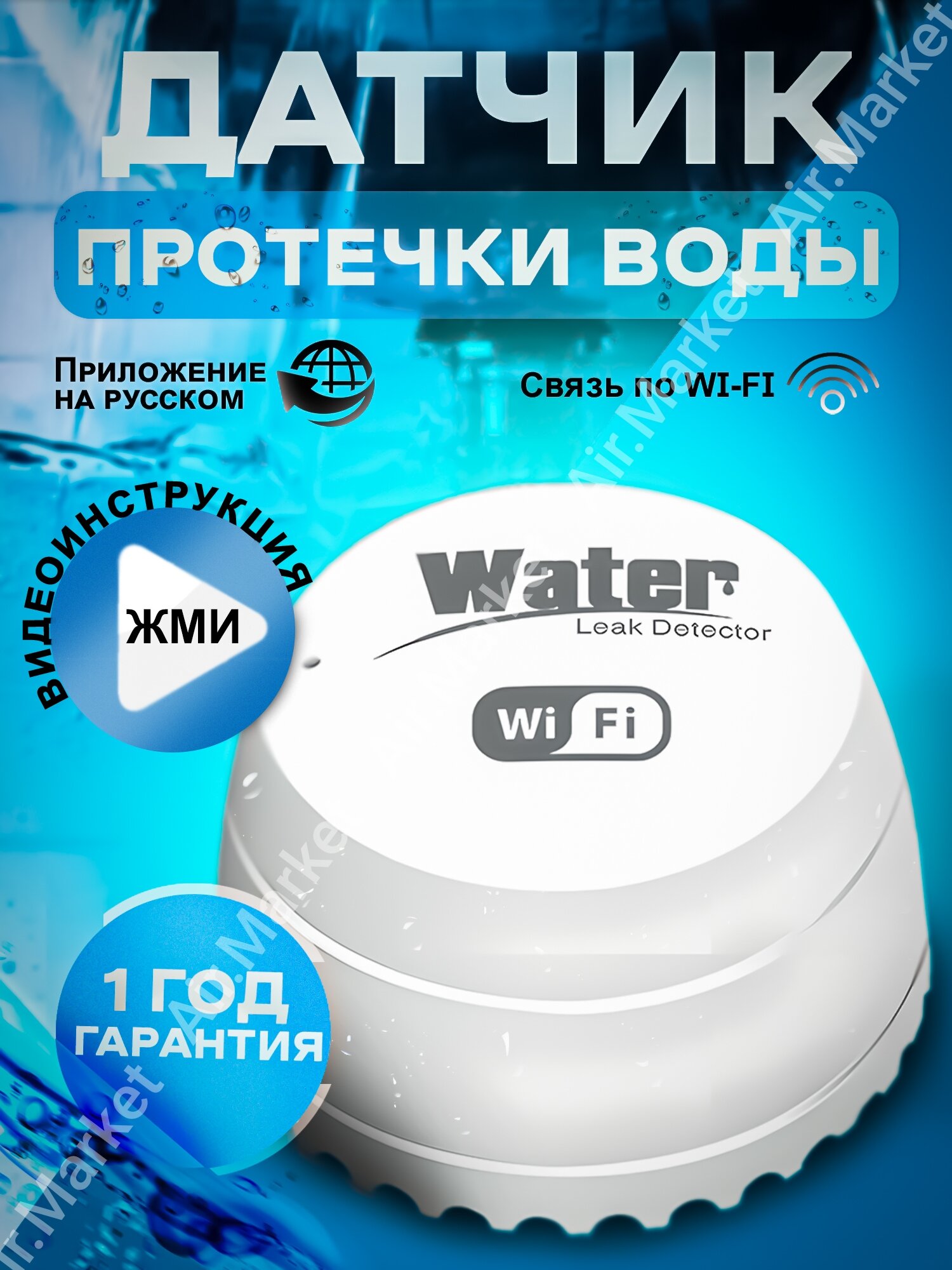 | Дополнительная информация | Питание от батареек CR123A. Комплектация: wi-fi датчик протечки воды 1шт., скрепка для сброса 1шт., инструкция на англ. языке 1шт. |