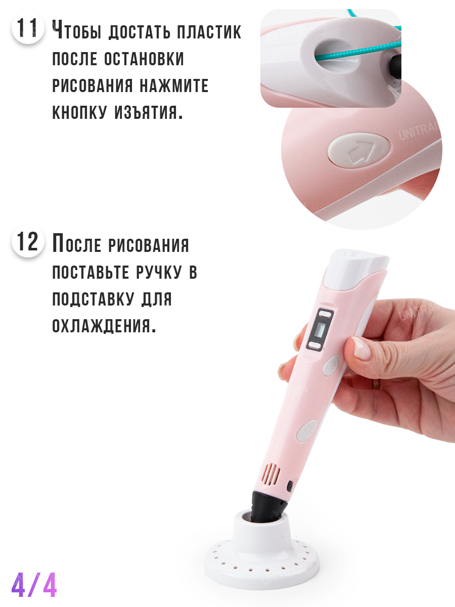 Комплект 3Д ручка NIT-Pen2 розовая + пластик ABS 10 цветов по 10 метров