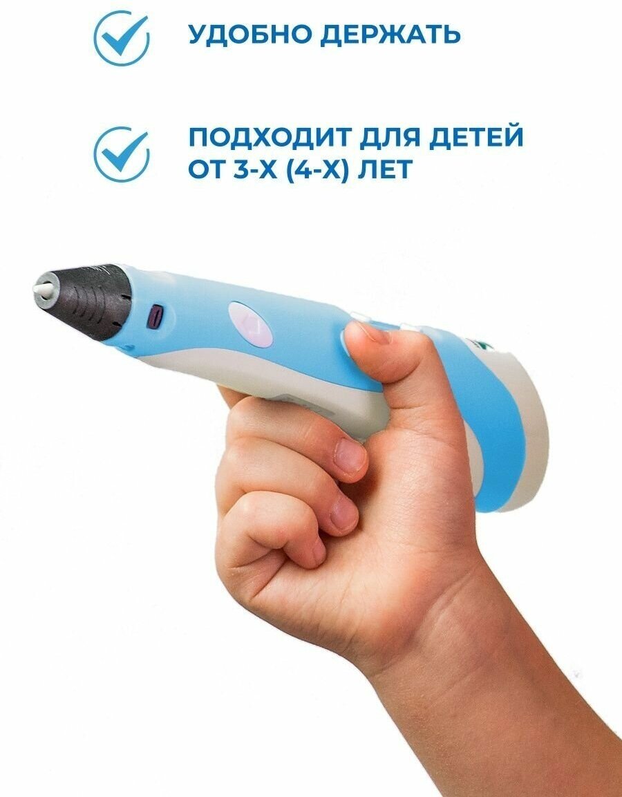Купить 3D ручка 3Dpen3 голубая с набором дополнительного пластика "радуга" и трафаретами / 70 м пластика в комплекте