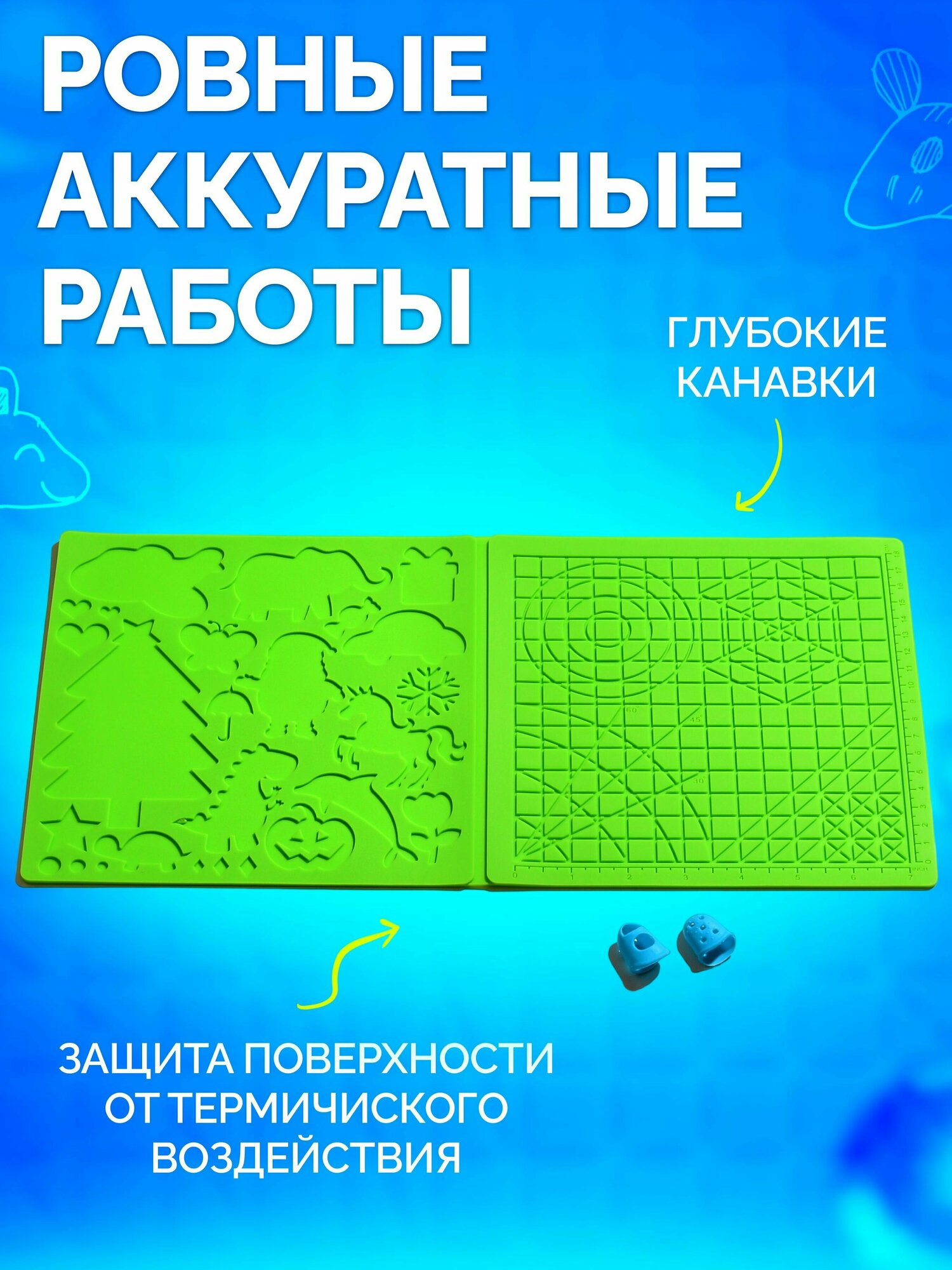 Коврик для 3д ручки силиконовый набор для 3d рисования + защитные напальчники / термостойкий силиконовый коврик для 3d ручки/ Голубой