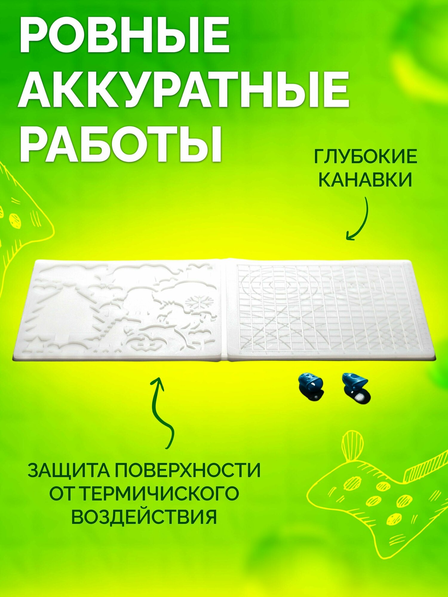 Коврик для 3д ручки силиконовый набор для 3d рисования + защитные напальчники / термостойкий силиконовый коврик для 3d ручки/ Зеленый