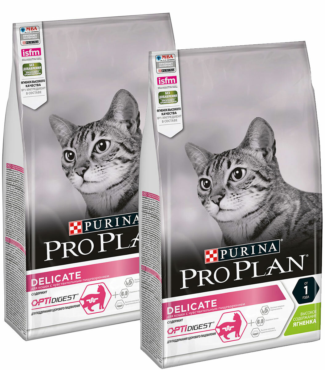 Купить PRO PLAN CAT DELICATE LAMB для взрослых кошек с чувствительным пищеварением с ягненком (10 + 10 кг)
