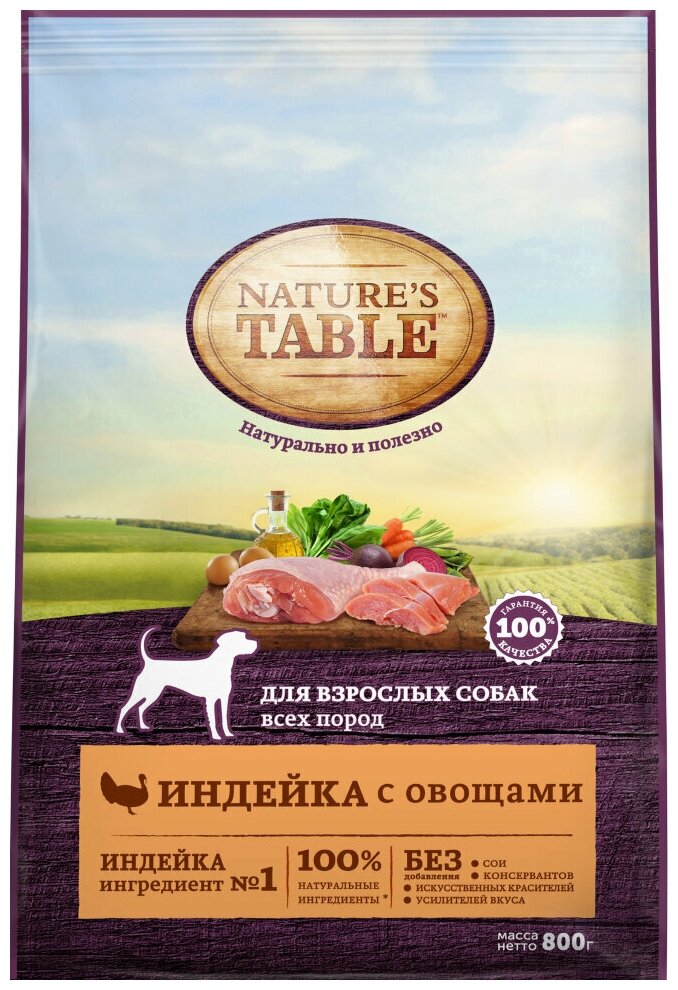 Сухой корм NATURE'S TABLE для взрослых собак всех пород с индейкой и овощами (0,8 кг)