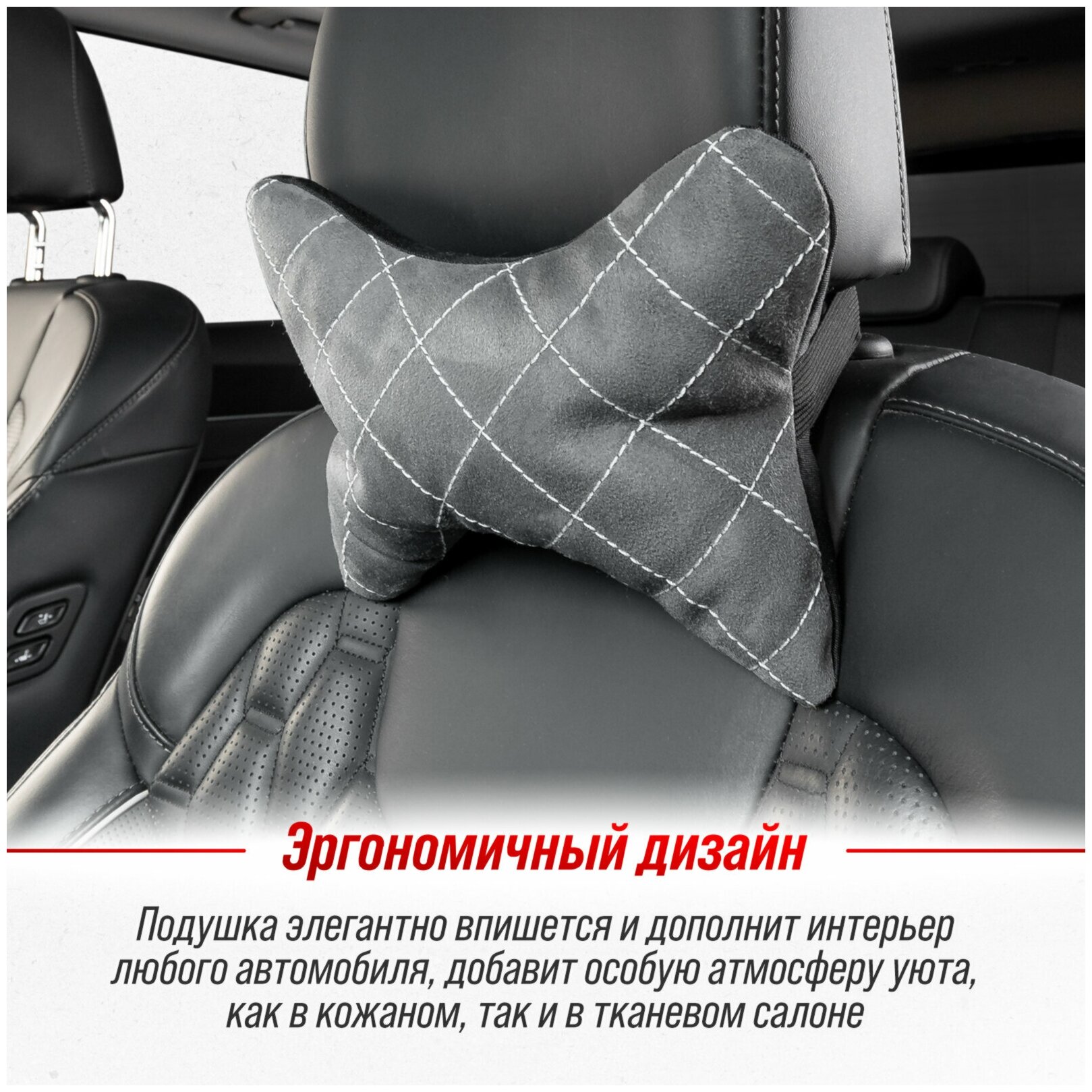 SKYWAY S08003004 Подушка на подголовник EXPENSIV алькантара Серая (строчка белая); SKYWAY интересное: