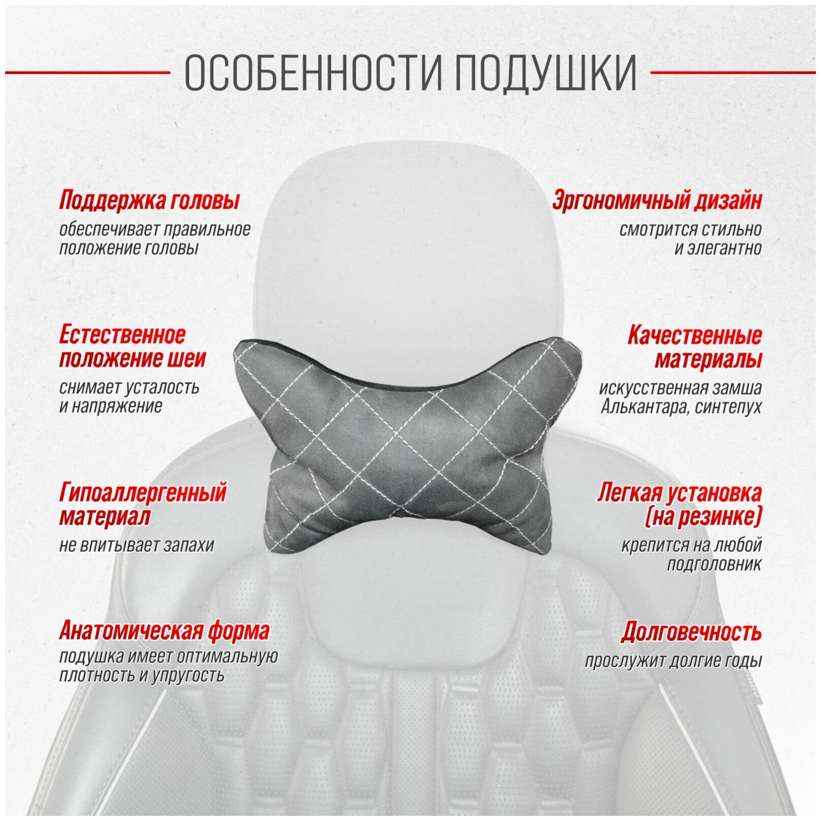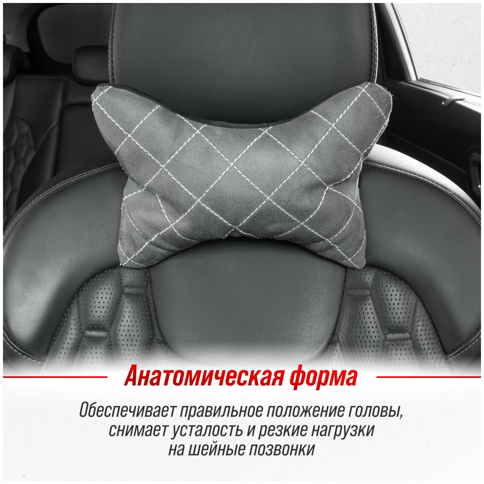 Купить SKYWAY S08003004 Подушка на подголовник EXPENSIV алькантара Серая (строчка белая); SKYWAY