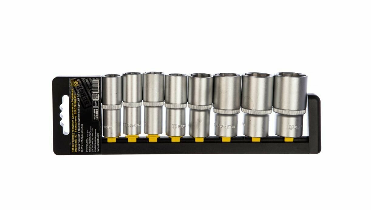 Купить Набор головок торцевых удлиненных BERGER BG2031 1/2" SuperLock 8 предметов (18-32мм) подвес