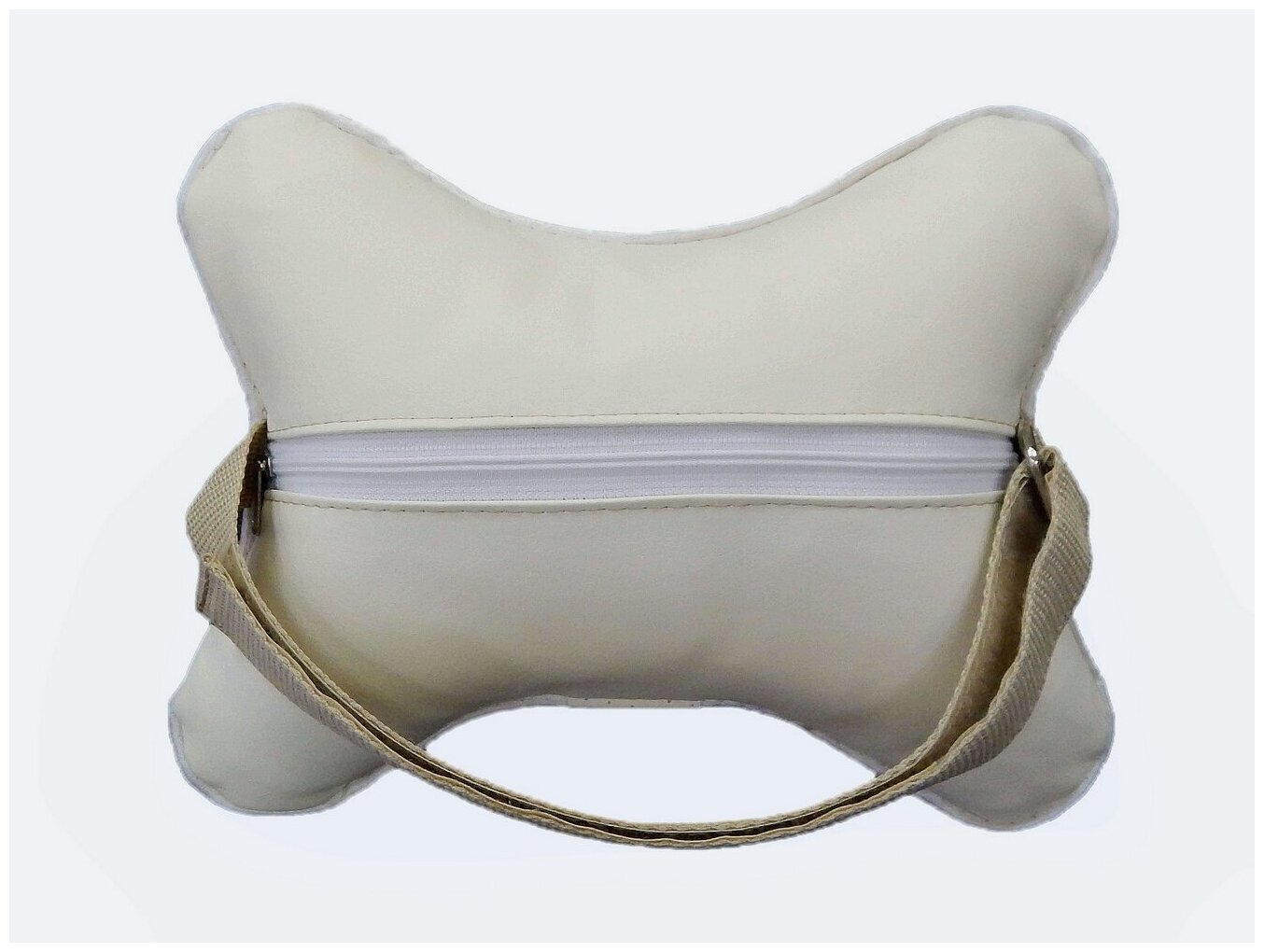 Купить Подушка-косточка автомобильная под шею. Маленькая. Экокожа. Цвет: светло-бежевый.