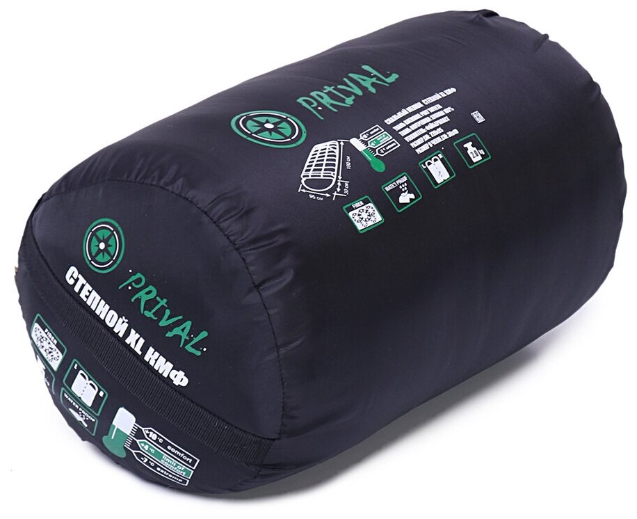 Спальный мешок одеяло Prival Степной XL КМФ лес, t extr -7 °С, 220х95, молния слева интересное: