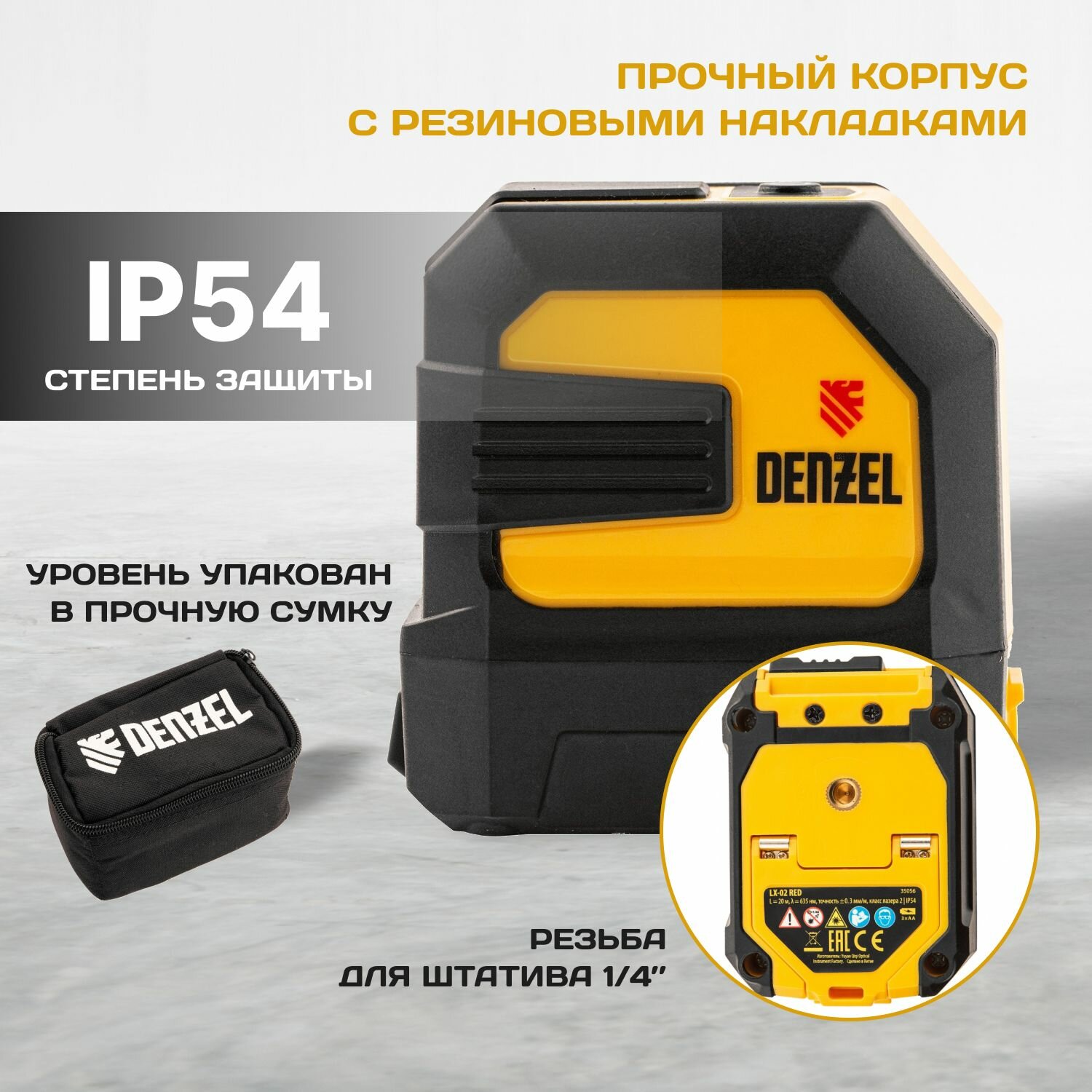 Denzel Лазерный уровень 35056, LX 02 Red, 20 м, 635 нм, резьба 1/4"