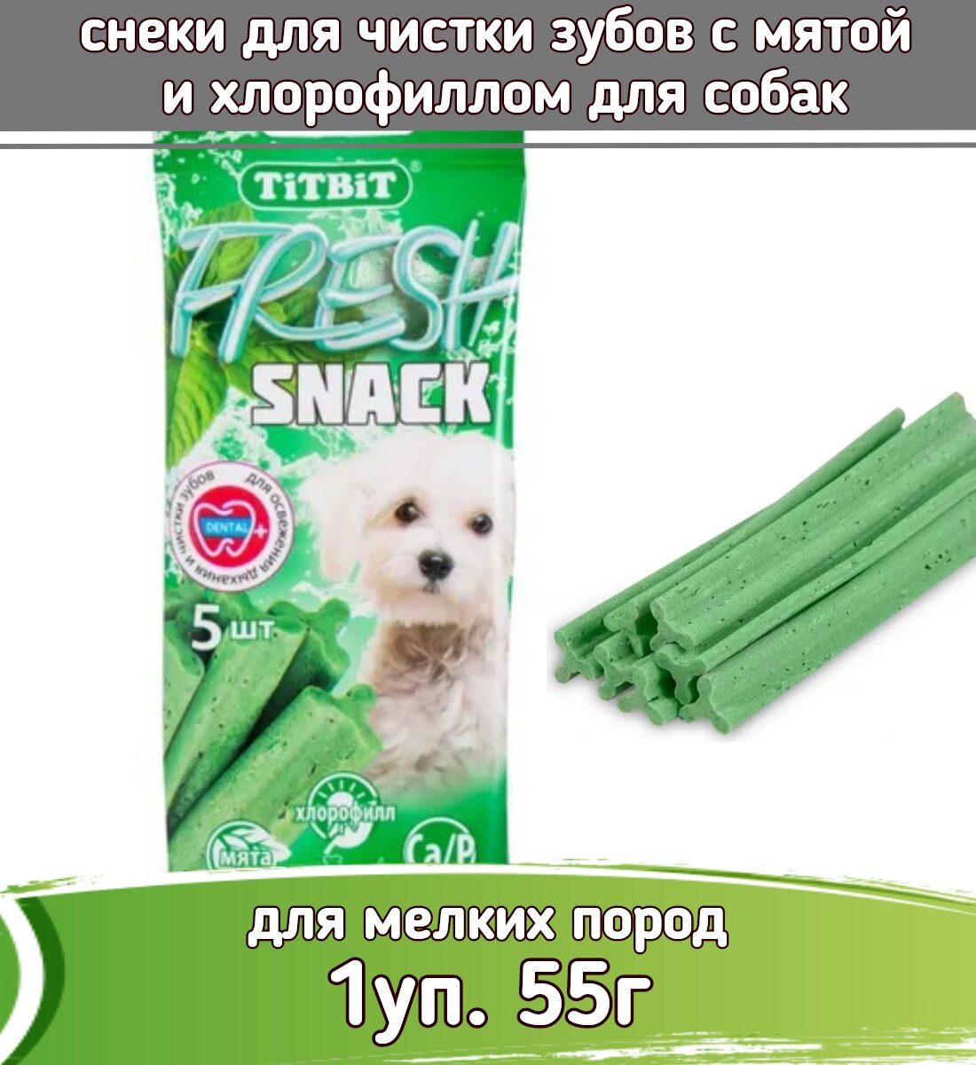 TiTBiT Fresh Snack Лакомство для собак мелких пород Снек с Хлорофиллом 55 г