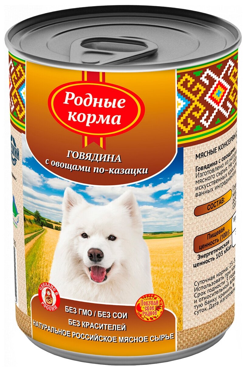 Родные корма Консервы для собак говядина с овощами по казацки, 970г 0.97 кг