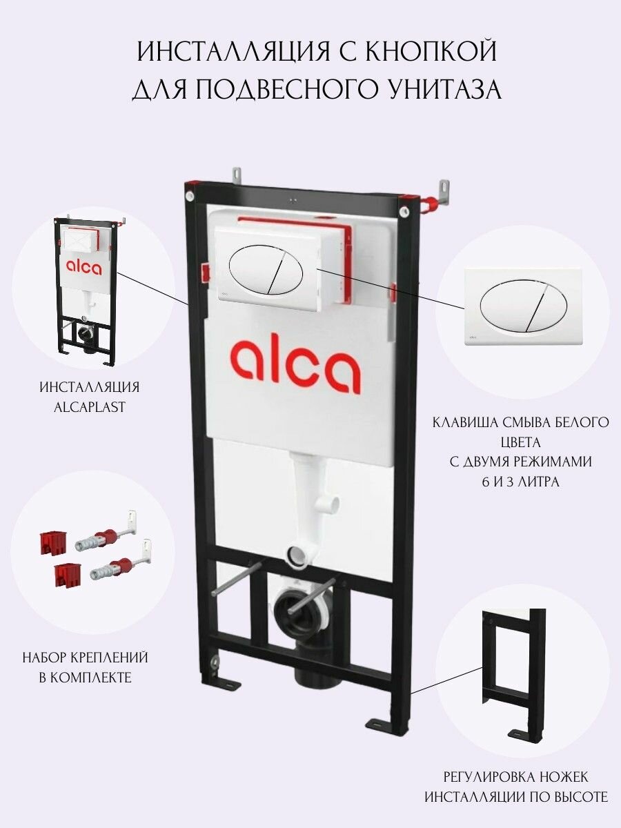 Инсталляция для унитаза инсталляции Alcaplast AM101/1120 + кнопка смыва M70 (белая)+ набор монтажных креплений интересное: