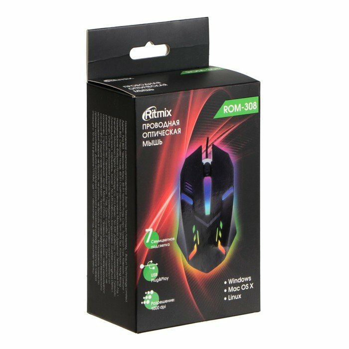 Мышь компьютерная RITMIX ROM-308 1000 dpi, подсветка, 3кн. (80001671)