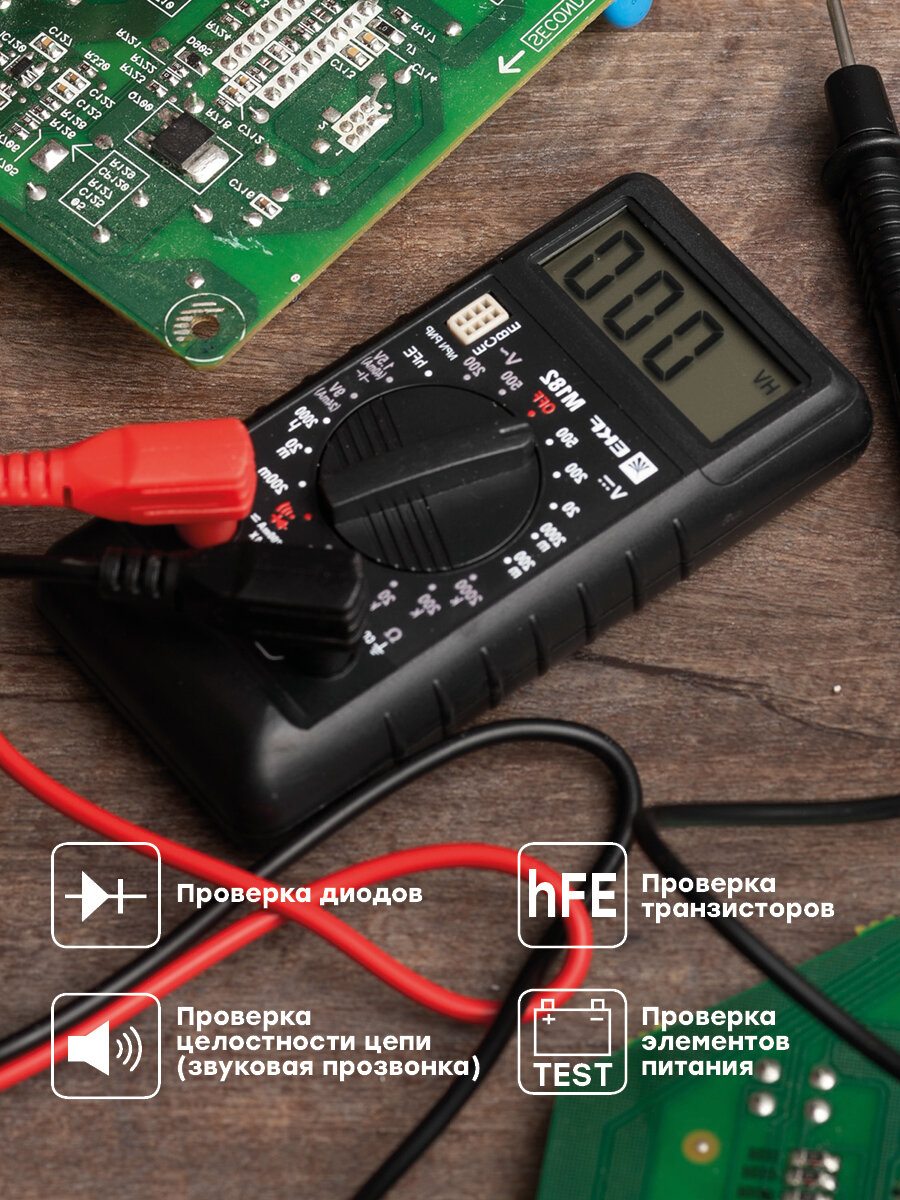 | Функции | выявление повреждения проводки и соединения, измерение переменного напряжения, измерение постоянного напряжения, измерение работоспособности диодов и транзисторов, измерение силы постоянного тока, измерение сопротивления |