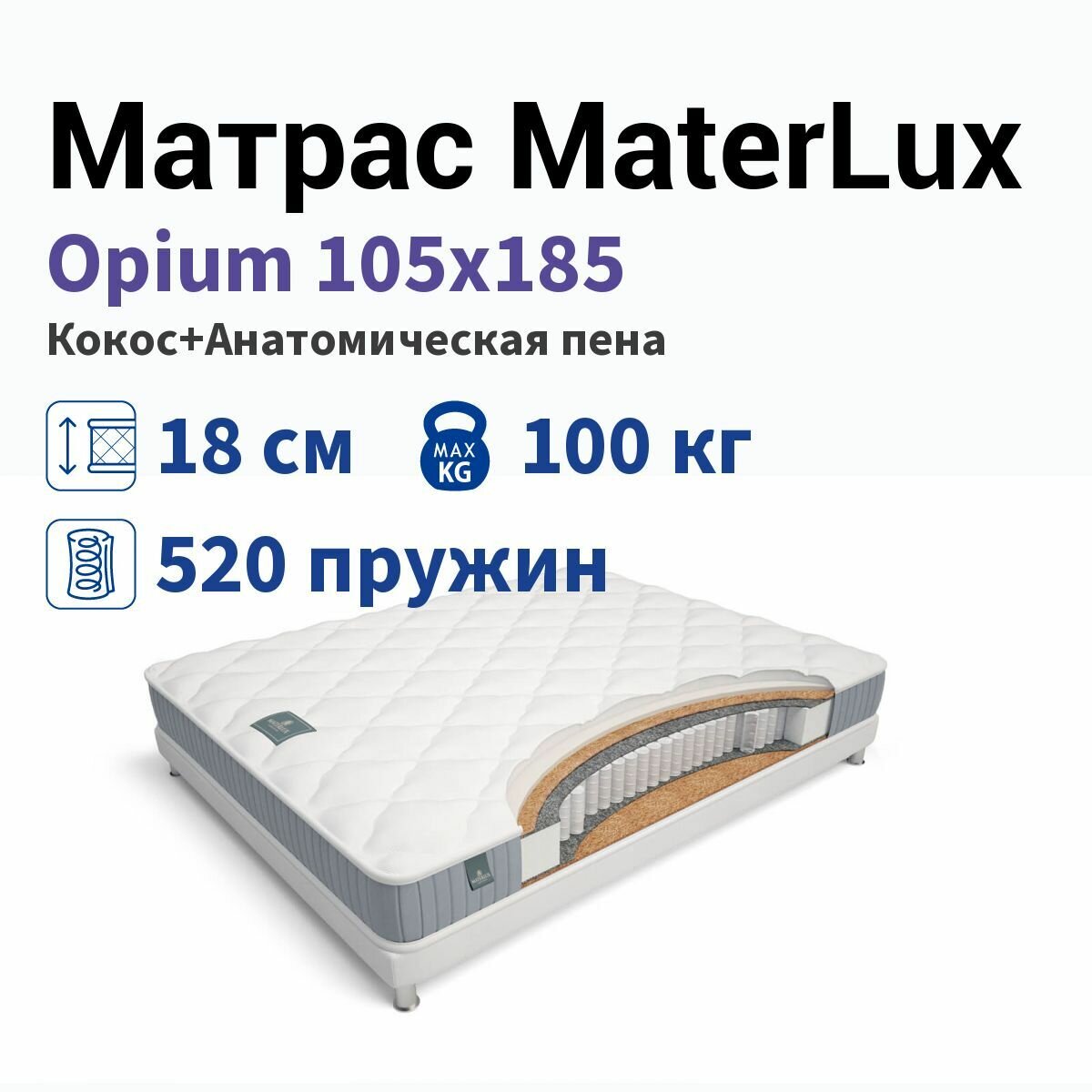 Матрас MaterLux Opium, 100x190 см (нестандартный), пружинный