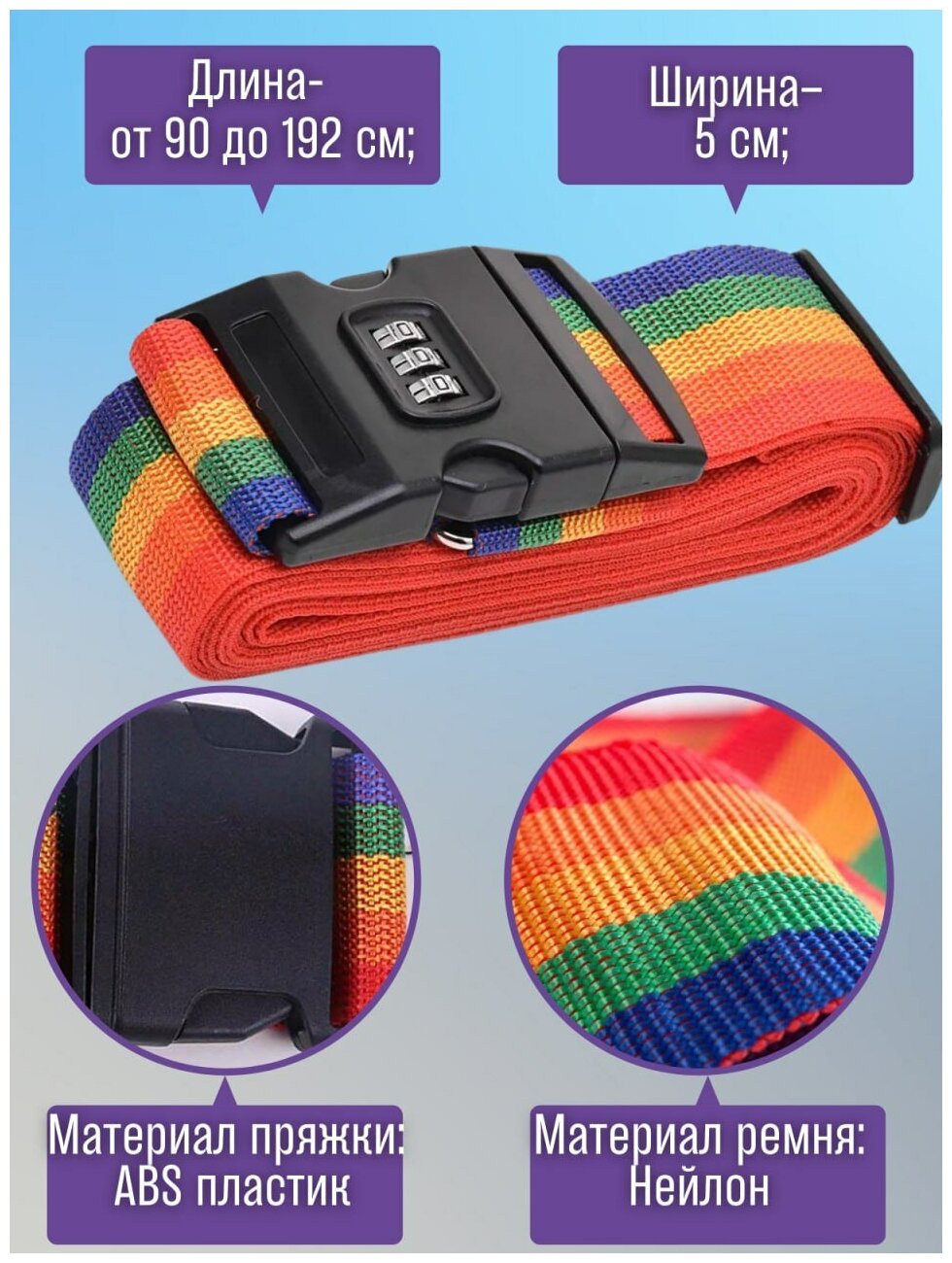 | Плюсы: | Хороший качественный ремень с кодовым замком. Надежно фиксирует багаж, регулируется по размеру чемодана. |